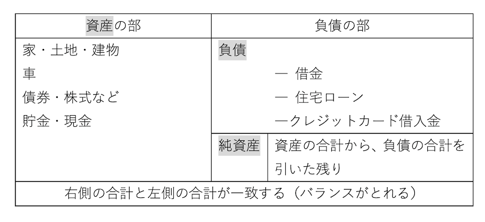 表の左側(資産の部)の合計と、表の右側(負債の部)の合計が必ず一致するようになっているのが、バランスシートと呼ばれる所以です。