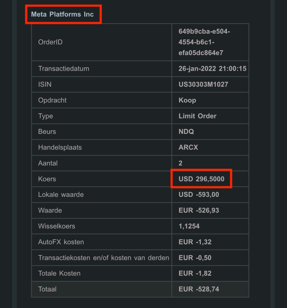 1月26日に、Meta(旧FB)の株をUSD296.50で2株買いました。