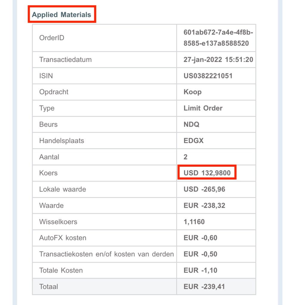 1月27日に、Appleid Materials の株をUSD132.98で2株買いました。