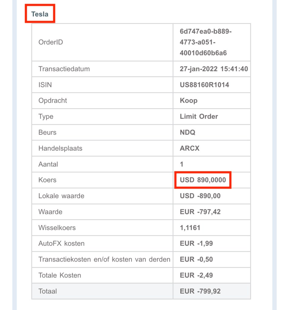 1月27日に、Teslaの株をUSD890で1株だけ買いました。